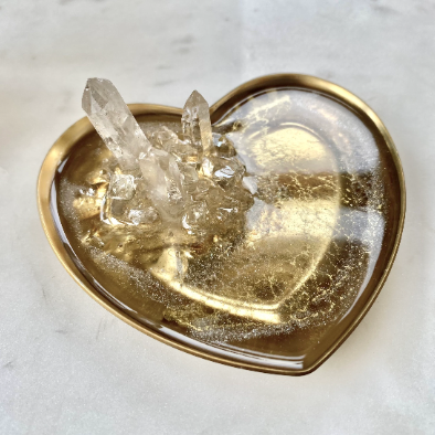 Heart Shaped Geode Inspired Ring Dish w/ clear Quartz - Gold - 3.4" x 3.6" x 1.25"