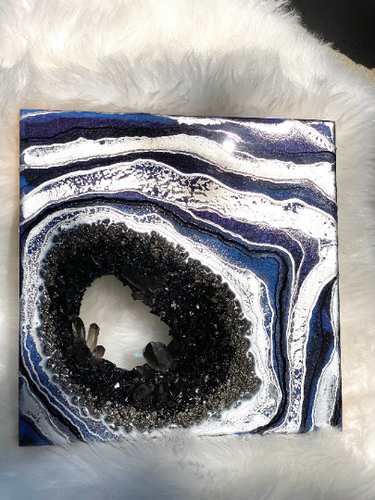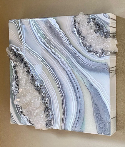 Silver Amethyst Geode Painting 12" x 12" x 3.4"